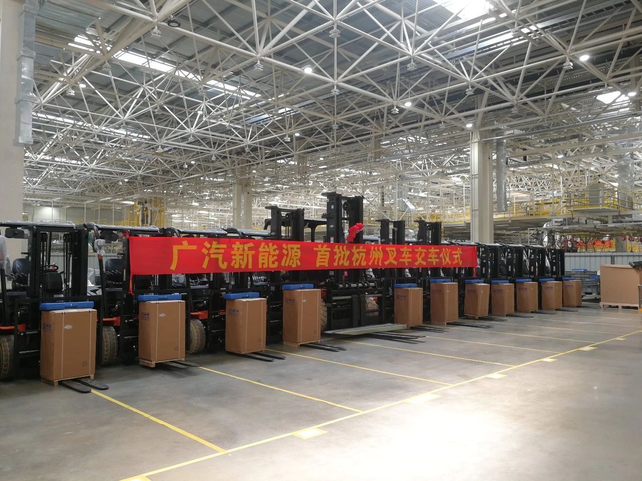 新能源、新生活、新期待、新未來。杭叉集團秉承“您的滿意,我的追求”的服務宗旨,竭誠為廣汽新能源提供最優質的叉車設備及最完善且便捷的售后服務,力求讓每一款杭叉設備都能為廣汽新能源創造最大的經濟價值。